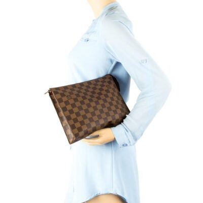 This is an authentic LOUIS VUITTON Damier Ebene Poche Toilette 26 Bag. It’s a classic toiletry bag and the largest. It features the damier ebene check canvas with gusseted sides, a gold-tone zip closure, and a washable red lining on interior. It’s a multi-purpose bag, ideal for travel, but perfect for any use. Add this to your collection today!