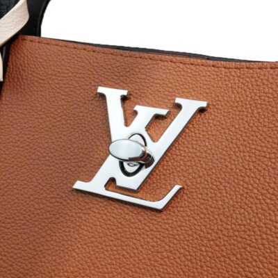 Dedicated to the elegant, active woman, this Lockme Go tote offers both flawless functionality and uncompromising style. Crafted from soft, grained calfskin, with double handles designed for comfortable over-the-shoulder wear, this essential modern carry-all is accented with a silvery LV turn lock and two snap buttons to keep belongings secure.