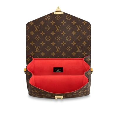 An exquisitely fashioned leather handle, braided and edge-dyed by House craftsmen, gives this Pochette Metis a unique appeal. The colorful smooth cowhide creates a pleasing contrast with the iconic Monogram canvas of this compact, structured handbag, accented with an oversized LV leather charm. Furnished with a detachable strap for hands-free carry.