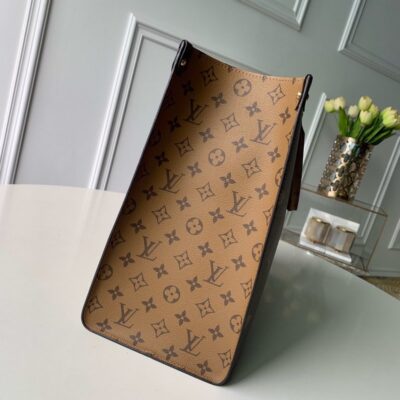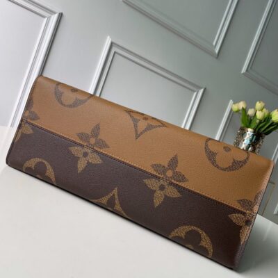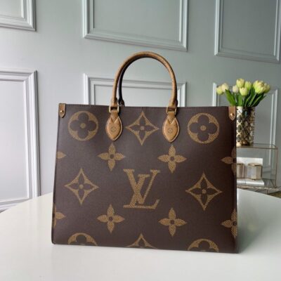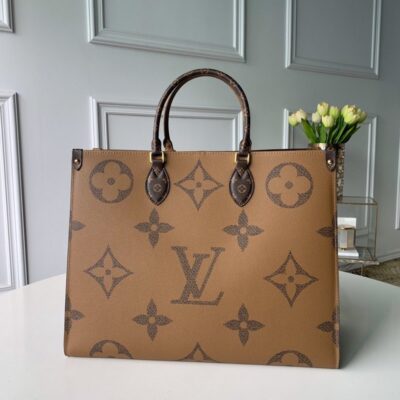 Fashioned from Monogram Giant canvas, the Onthego tote bag is as striking as it is practical. A Monogram Reverse pattern on the sides and handles creates a stylish contrast in color and scale. With its generous capacity, removable shoulder straps and iconic Toron top handles, this versatile GM model is an ideal bag for everyday wear.
