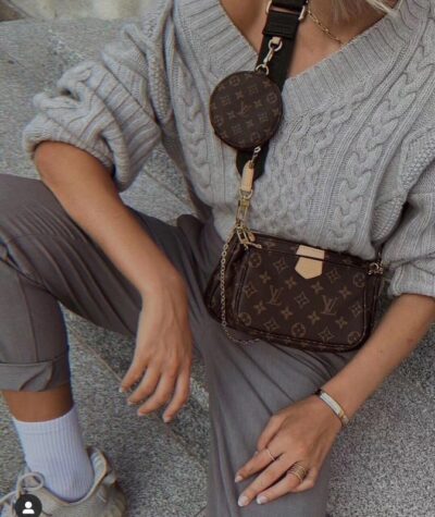 The Multi Pochette Accessoires is a hybrid cross-body bag with multiple pockets and compartments that brings together a Pochette Accessoires, a Mini Pochette Accessoires and a Round Coin Purse. Fashioned from Monogram canvas with a mini Monogram pattern on the sides of the two pochettes, it has both a removable gold-tone chain and an adjustable Louis Vuitton inscribed Jacquard strap for multiple carrying options.