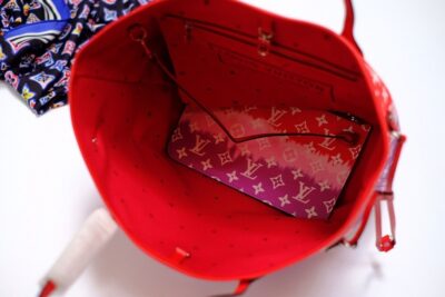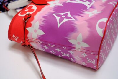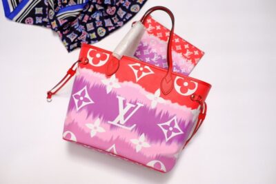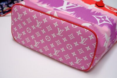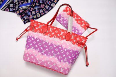 Inspired by the ancient Japanese technique of knotting and folding fabric before dyeing it, the LV Escale Collection brings a touch of summer to the Neverfull MM tote in a Tie-Dye Monogram canvas. Tighten the laces and this versatile tote bag becomes a smaller, stylish city bag.