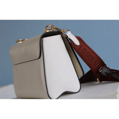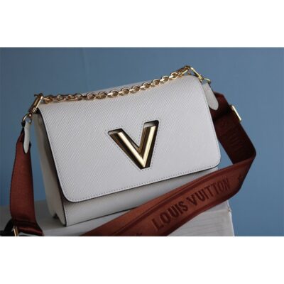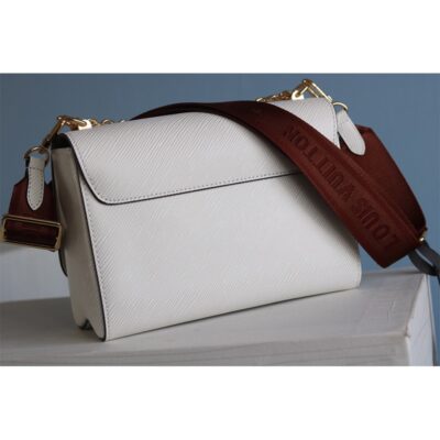 The Twist Strap MM is a laid-back iteration of the New Classic bag. It features both a Epi grained leather top handle and a wide, sporty-chic embroidered satin strap. Designed for a short cross-body carry, the strap is embroidered with “Louis Vuitton”. A standout style for casual or athleisure looks.