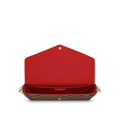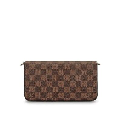 With its two removable interior pockets, the elegant Pochette Felicie in historic Damier canvas is the stylish solution to carry and organize your daily essentials. Much more than a wallet, it can be transformed into a glamorous shoulder bag or clutch thanks to its removable golden chain.