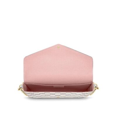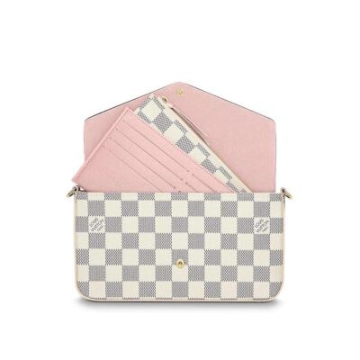 With its two removable interior pockets, the elegant Pochette Felicie in Damier Azur canvas is the stylish solution to carry and organise all your daily essentials. Much more than a wallet, it can be transformed into a glamourous shoulder bag or clutch thanks to its removable golden chain.