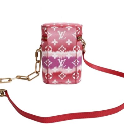 Virgil Abloh’s new Phone Box is a compact bag, perfect for carrying small essentials. Made from classic Monogram canvas with an adjustable strap in smooth leather, it features Abloh’s gold-color chain signature. Inside there’s a mini flat pocket for credit cards and a driver’s license.