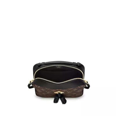 Monogram canvas and smooth calfskin combine in the Saintonge, a compact bag with a youthful vibe. The leather lends contrast and volume to the design, and the tassels are a playful touch. With its top handle and long strap, the bag can be styled in different ways.