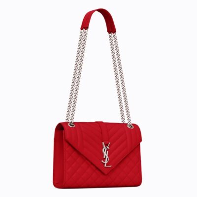MONOGRAM SAINT LAURENT BAG WITH FRONT FLAP, ADORNED WITH METAL INTERLOCKING YSL INITIALS LEATHER AND CHAIN STRAP, AND HORIZONTAL AND VERITCAL QUILTED OVERSTITICHING.