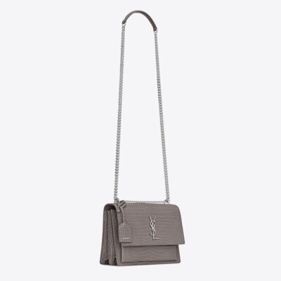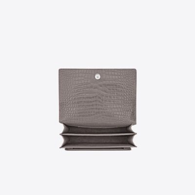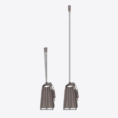 SAINT LAURENT FLAP FRONT BAG WITH ACCORDION SIDES, LEATHER AND CHAIN STRAP THAT CAN BE WORN CROSSBODY OR DOUBLED ON THE SHOULDER, LEATHER ENCASED KEY RING AND METAL INTERLOCKING YSL SIGNATURE.